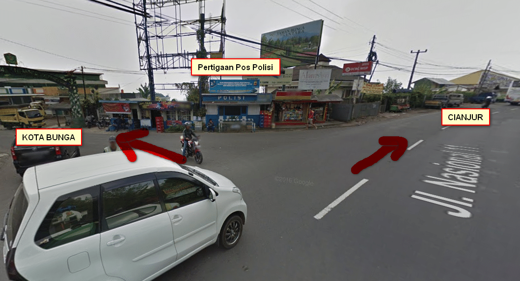 - Dari pintu tol Ciawi, ikuti jalan ke arah Puncak Pass.